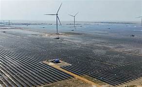 A gauche Parc du Khavda (Inde) – A droite : Centrale flottante en Chine
