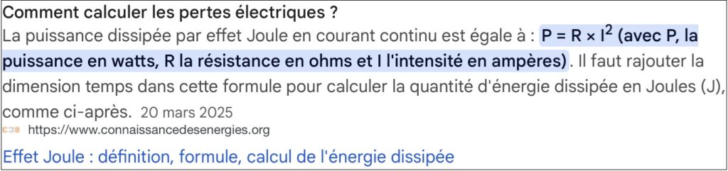 Quant à la déperdition suite à l’enfouissement des câbles sur de grandes distances, difficile de trouver des renseignements précis sinon qu’elle existe bel et bien. Voici une formule pour calculer ces pertes : bon courage !
